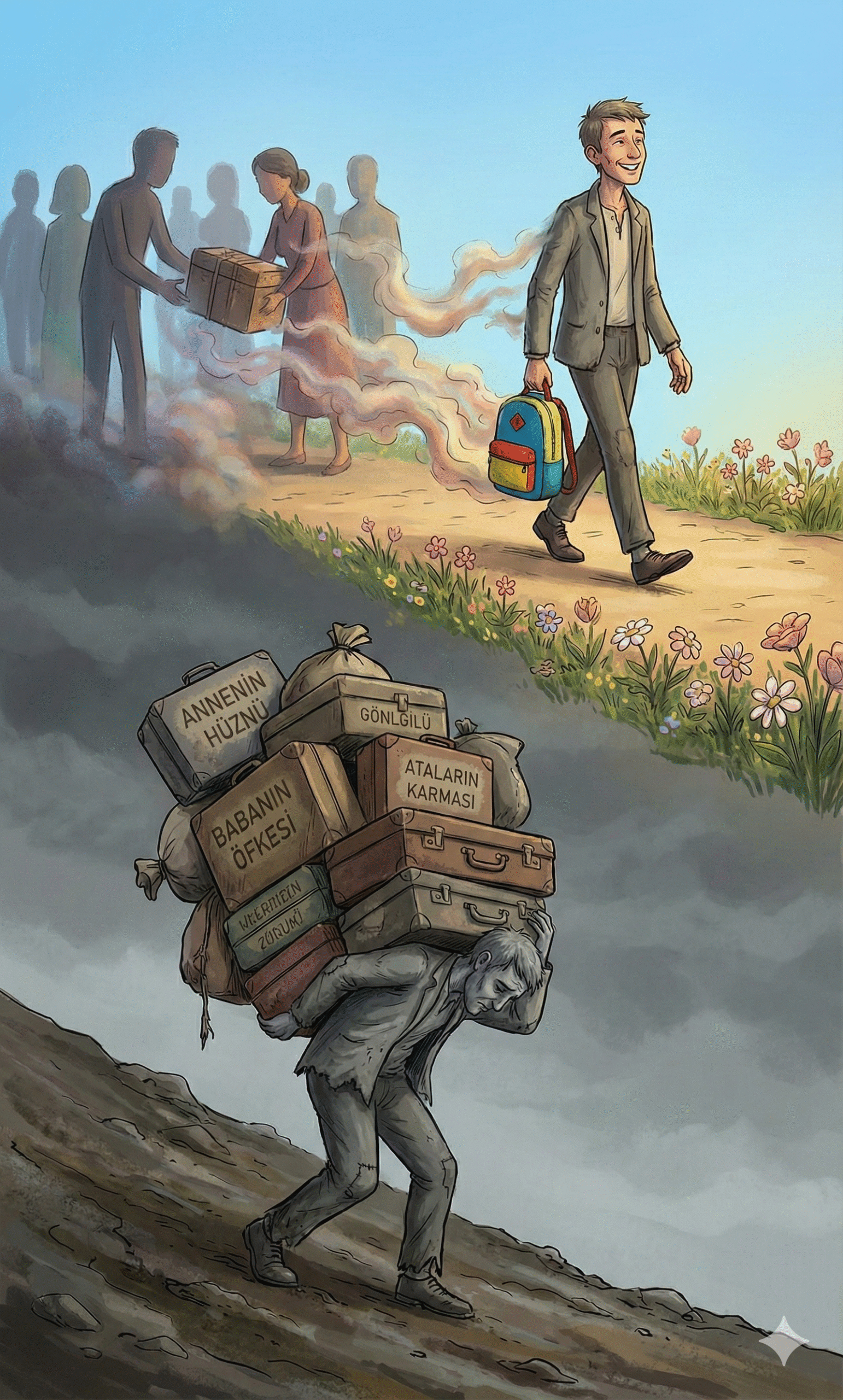 Aile dizimi sahnesinde bu görünmez kontrat feshedilir. Kişi, atalarının kaderine saygı duyar ama onu tekrar etmeyi reddeder. “Sizin kaderiniz ağırdı, önünde eğiliyorum. Ama ben kendi hafif kaderimi yaşamayı seçiyorum” diyebilmek, zincirleri kırar.